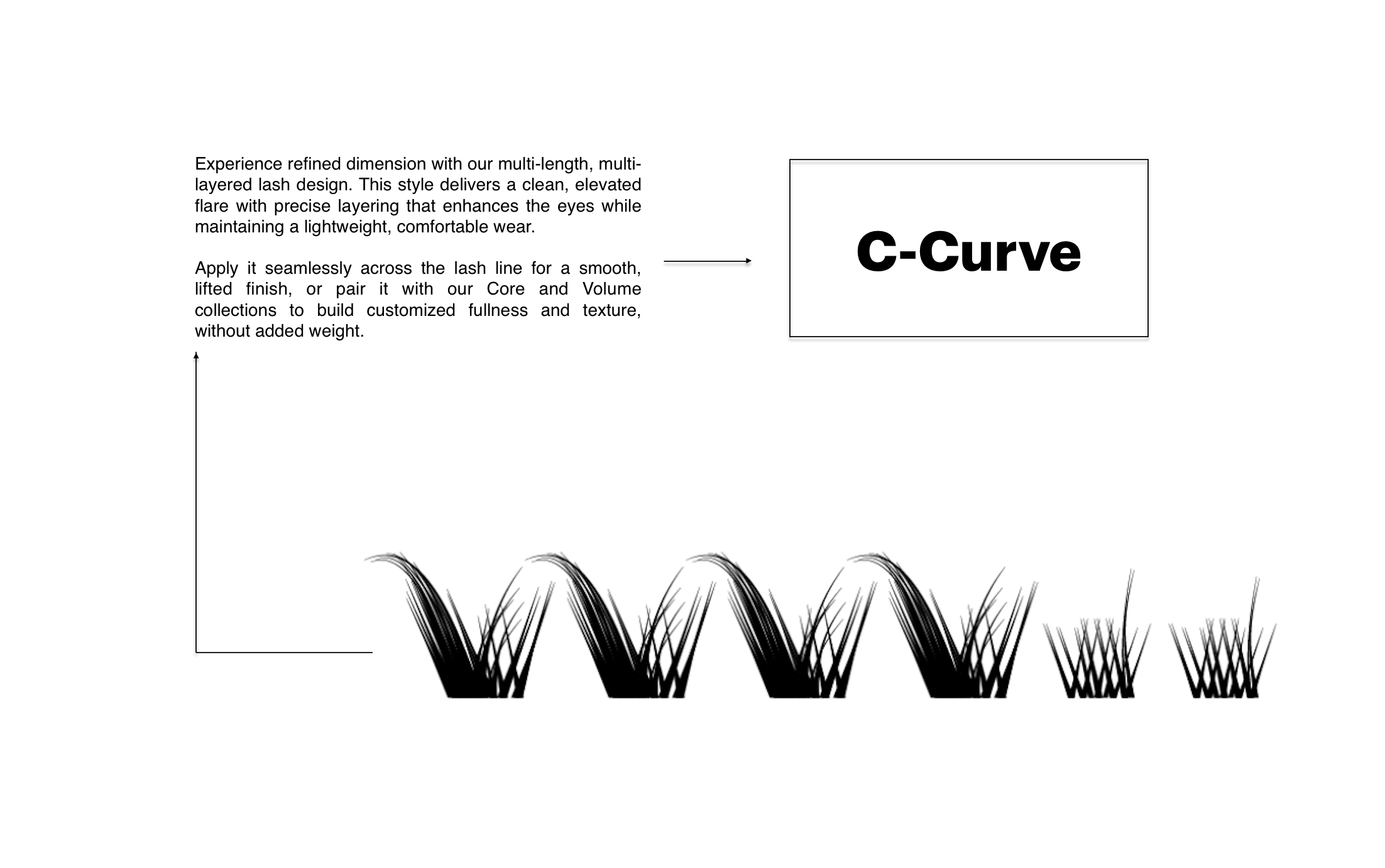 Witness the metamorphosis with SEEYA lashes, seamlessly transitioning from understated refinement to striking allure. A proprietary layering method that creates natural depth and dimension without adding bulk, which delivers a featherlight feel even in fuller styles.